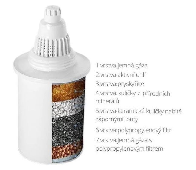 Im Gegensatz zu anderen Filtereinsätzen filtert er das Wasser nicht nur, sondern alkalisiert und remineralisiert es auch. Durch die Erhöhung des pH-Wertes wird das Wasser alkalischer. Dank des Filters ändert das normalerweise saure Leitungswasser seinen pH-Wert auf ca. 8 – 9,5 (abhängig von der Qualität des gefilterten Wassers). Dank dieses alkalischen Wassers wird auch der pH-Wert im Körper reguliert und das pH des Organismus auf ideale Werte ausgeglichen (95 % der Menschen haben einen übersäuerten Organismus aufgrund von Ernährung und Getränken, was zu einem geschwächten Immunsystem führt und anfälliger für Krankheiten macht, die durch ein saures Milieu begünstigt werden - gerade ein saures Milieu fördert die Vermehrung von Viren und Bakterien im Organismus).