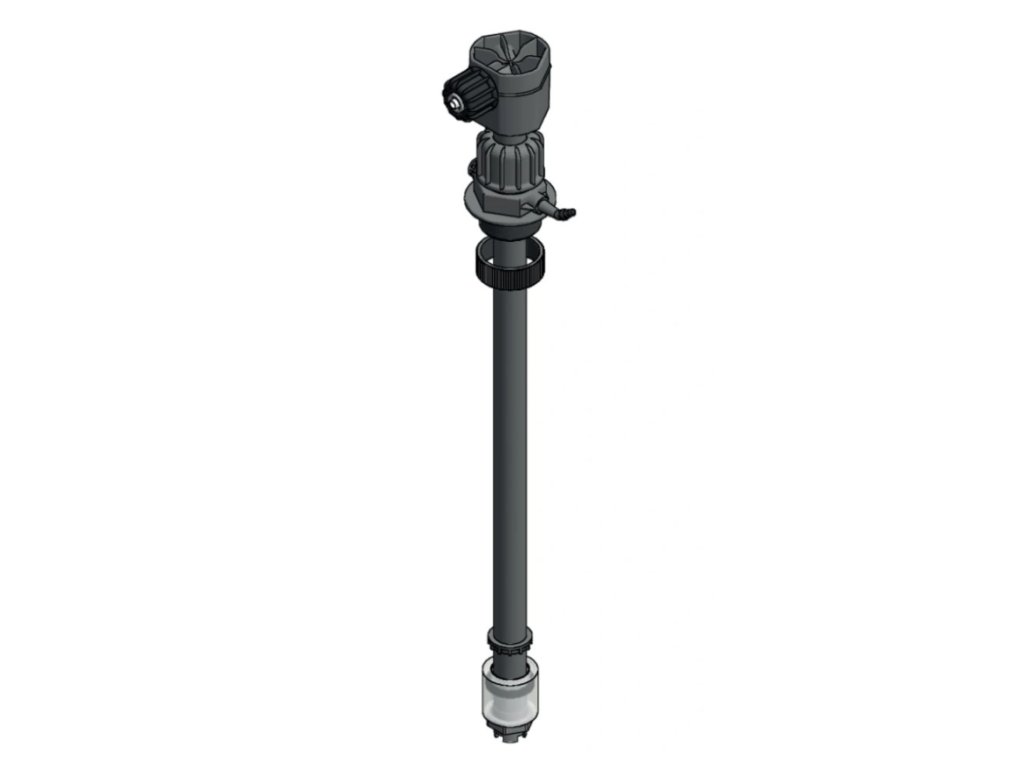 Ansauganheit EMEC LASP4 wird zum Dosieren von Chemikalien aus Kanistern/Fässern mittels einer Dosierpumpe verwendet. Die Einheit ist mit einem Sensor zur Anzeige des minimalen Füllstands ausgestattet, der die Pumpe vor Trockenlauf schützt. Weiterhin verfügt sie über ein Rückschlagventil, das das Zurückfließen der Flüssigkeit in den Behälter verhindert, und einen Mechanismus zur Befestigung der Einheit am Behälter. Das Rohr ist genau dimensioniert, sodass der Saugkorb mit Sensor immer vollständig am Boden des Behälters platziert ist und immer in vertikaler Position steht.