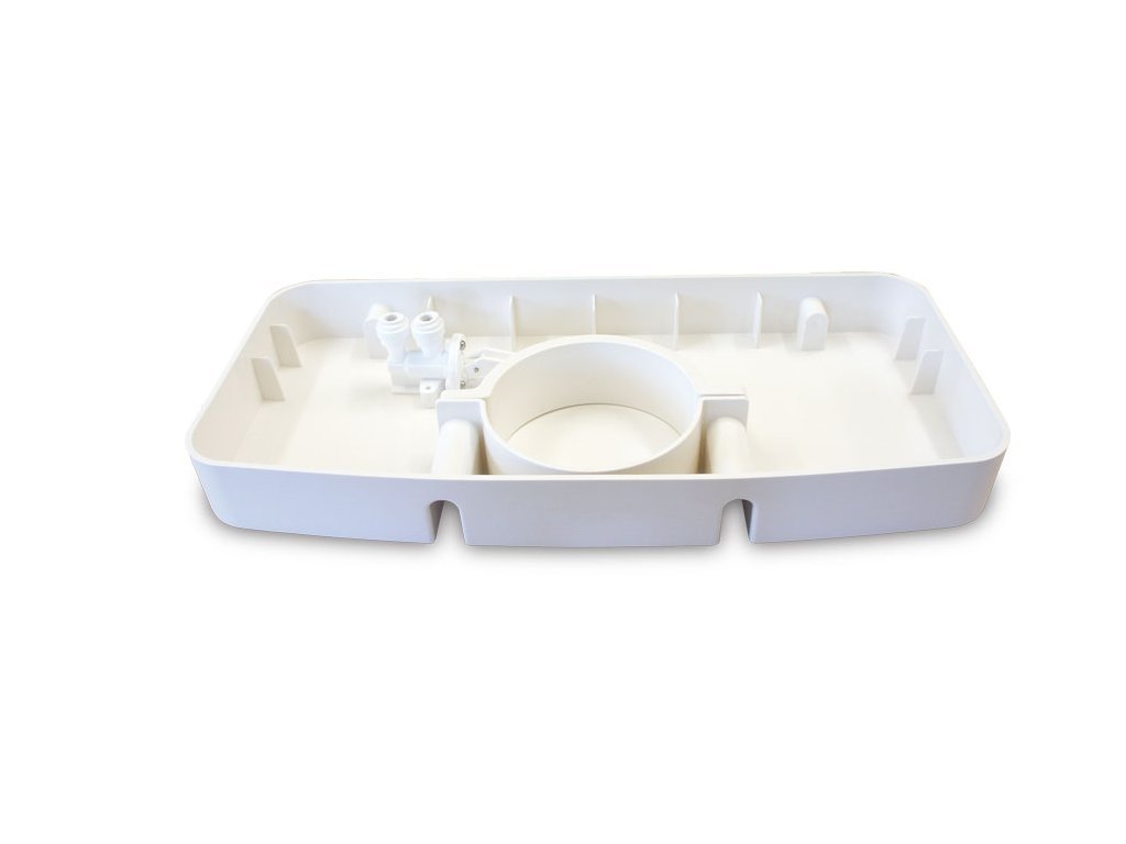 AQUA PROTECT besteht aus einer Rückhalte-Kunststoffschale und einem Sicherheitsventil, das die Wasserzufuhr zur Filtrationsanlage absperrt, falls Wasser in die Auffangschale gelangt. Das Prinzip von AQUA PROTECT ist eine spezielle gepresste Textil-Tablette. Diese ist im Sicherheitsventil mit Federung platziert und vergrößert nach dem Benetzen sehr schnell ihr Volumen, wodurch das Ventil am Wasserzulauf zur Filtrationsanlage mechanisch verschlossen wird.
