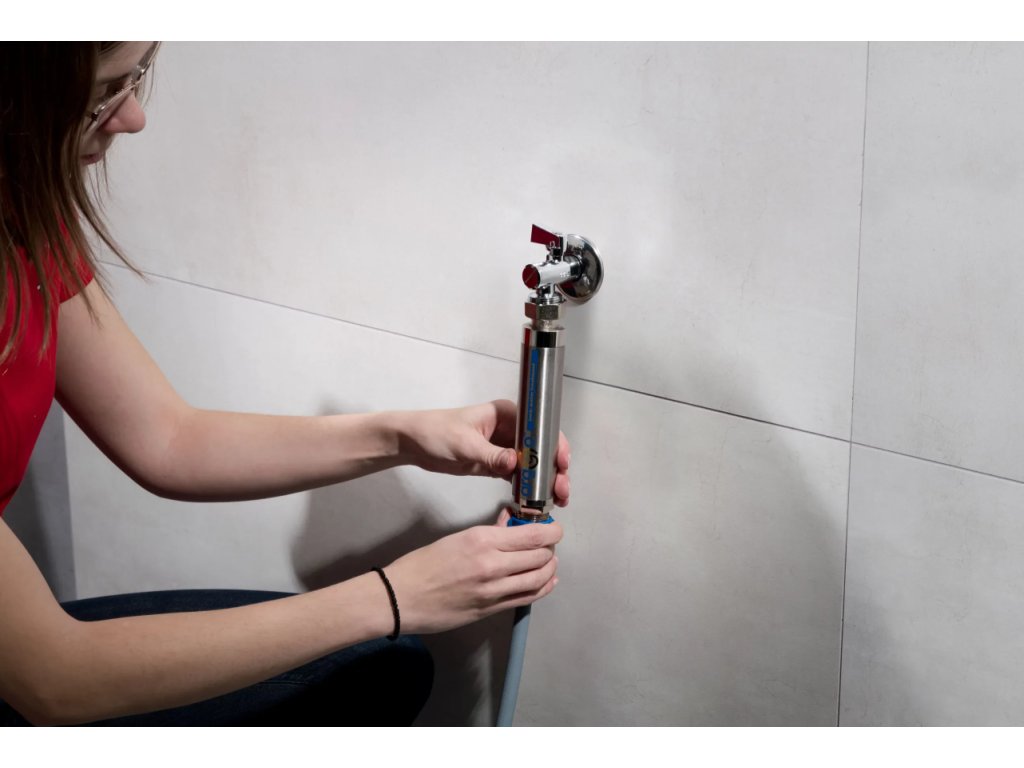 Installation Das Gerät ist für die Installation in das Wassersystem bestimmt, wobei der Betriebsdruck, der Durchfluss und die Temperatur eingehalten werden müssen, die die technischen Parameter des Produkts nicht überschreiten. Das ARAGO MINI Gerät wird vor bestimmten Geräten installiert, sowohl in horizontaler als auch vertikaler Position, unabhängig von der Fließrichtung des Wassers. |