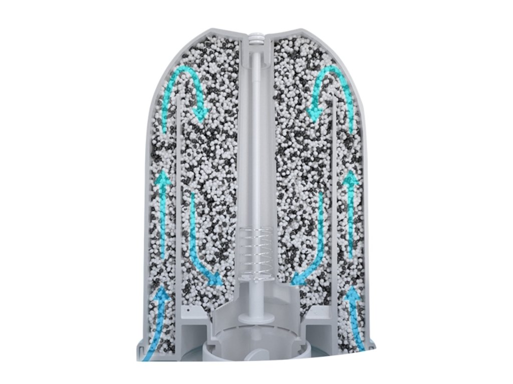 - Die enthaltene Aktivkohle absorbiert Verunreinigungen und entfernt Gerüche aus dem Wasser