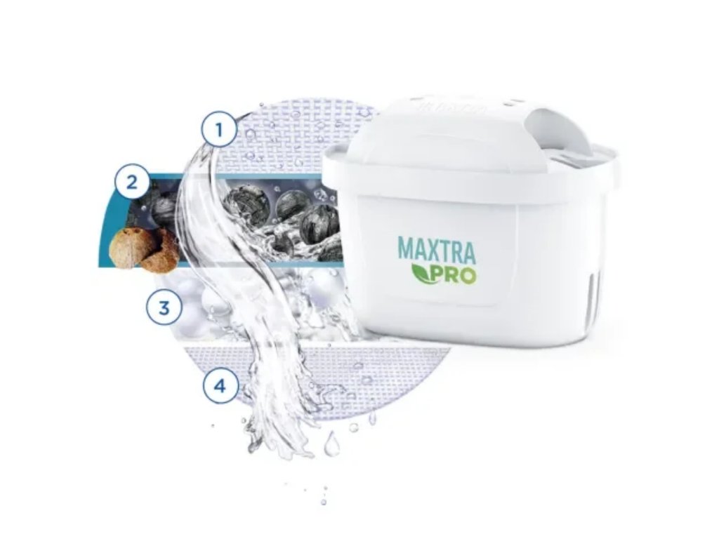 Der Filterkassette Brita Maxtra Pro stellt die fortschrittlichste Technologie zur Wasserfiltration von einem führenden deutschen Hersteller dar. Im Vergleich zur vorherigen Generation Maxtra+ ist sie mit einem Hochleistungs-Filternetz ausgestattet, das 4-mal effektiver ist beim Zurückhalten von mechanischen Partikeln. Effektiv reduziert Chlor und andere unerwünschte Stoffe, die den Geschmack beeinflussen, Wasserhärte, Spuren von Schwermetallen, Herbizide, Pestizide, Medikamente und andere Verunreinigungen. Dank des Filters ist das resultierende Wasser reiner, schmackhafter und weicher. Eine Patrone filtert bis zu 150 Liter Wasser und kann für einen Zeitraum von vier Wochen verwendet werden. Erhältlich in Packungen zu 1 Stk., 3 Stk. oder 6 Stk. Brita Maxtra Pro Pure Performance ist ein Filter, ideal für die Verwendung mit weichem bis mittelhartem Wasser. Die Filtermasse besteht aus einem Ionentauscher in Form von synthetischem Harz und Mikropartikeln aus Aktivkohle, die aus Kokosnussschalen hergestellt werden. Der Patronenkörper besteht zu 50 % aus Biokunststoff, der im Rahmen des Brita-Recyclingprogramms recycelt werden kann. Dieser Kunststoff ist BPA-frei und somit für den Kontakt mit Trinkwasser geeignet. Für Gebiete mit hartem Wasser empfehlen wir den Filterkassette Brita Maxtra Pro Hard Water Expert.