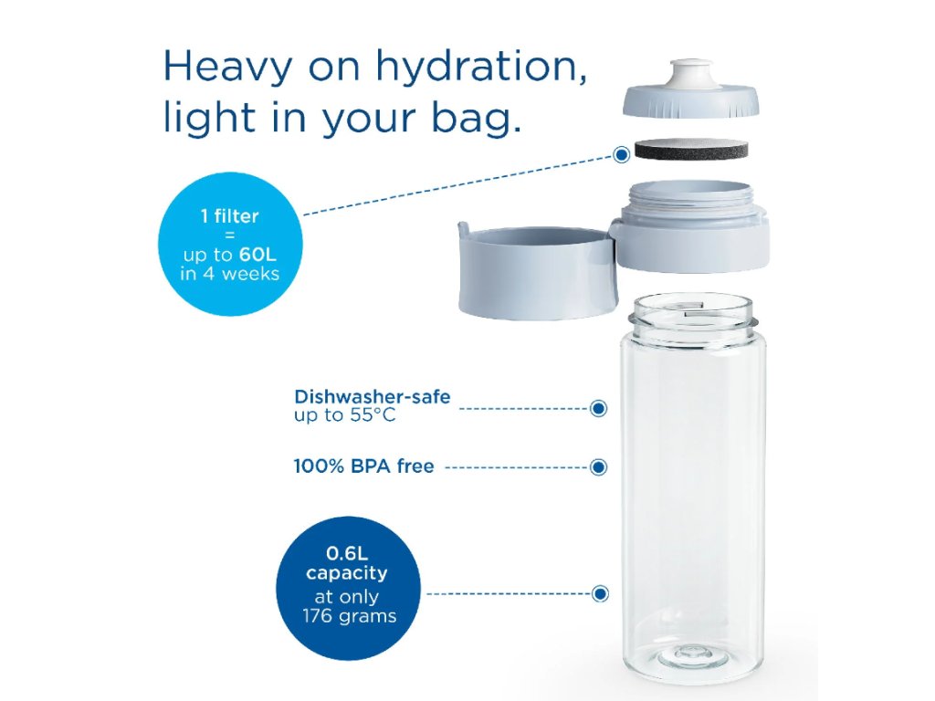 Die stilvolle Wasserfilterflasche Brita Fill&Go Vital mit einem Volumen von 600 ml sorgt dafür, dass Sie gefiltertes Wasser jederzeit und überall genießen können. Sie vereint Funktionalität, erstklassiges Design und die neuesten Filtertechnologien von einem führenden deutschen Hersteller von Wasserfiltern mit über fünfzigjähriger Tradition.