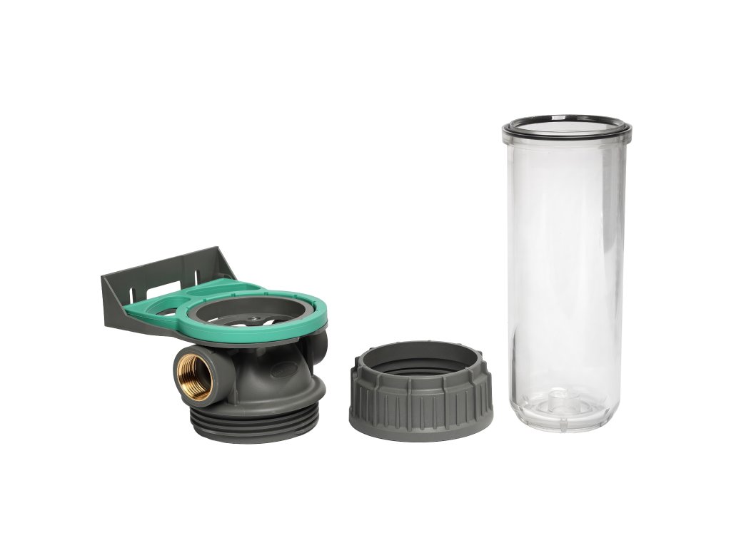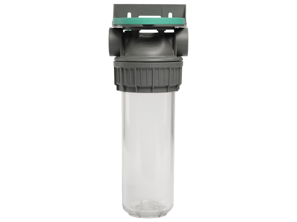 Das transparente Filtergehäuse PX ECO mit Überwurfmutter ist für die effektive Filtration von Wasser in Haushalten und Gewerbebetrieben konzipiert. Die Konstruktion dieses Modells besteht aus drei Teilen (Kopf-Mutter-Gehäuse), was eine einfache Montage und einen zuverlässigen Betrieb gewährleistet. Das Gehäuse besteht aus robustem PET-Material, das eine lange Lebensdauer und Zuverlässigkeit garantiert. Das Gehäuse ist mit einem Kunststoff-Entlüftungsventil und einem 2 mm Band am Gehäuse ausgestattet, das hilft, den Kopf für eine einfachere Montage und bessere Druckfestigkeit richtig zu zentrieren. Das sternförmige Design des Kopfes minimiert Druckverluste. Die clevere Platzierung des Schlüssels im Halter verhindert dessen Verlust. Dieses Modell ist kompatibel mit verschiedenen Arten von Filtereinsätzen (DOE, BIG, COD3). In Verbindung mit einem Filtereinsatz bildet er einen einfachen Filter, der das Eingangswasser von allen mechanischen Verunreinigungen befreit. Diese Filtration ist ideal als Vorfilter für weitere Filtrationen oder zum Schutz von Zubehör, das sauberes Wasser ohne mechanische Verunreinigungen wie Sand, Lehm, Ton, Haare und andere unlösliche Partikel im Wasser benötigt. Er gewährleistet mehr Komfort und Sicherheit bei der Verwendung von Wasser für alle Zwecke. Die Verpackung enthält nur das leere Filtergehäuse. Der Filtereinsatz ist nicht im Lieferumfang enthalten! Hauptmerkmale: 2 mm Band am Gehäuse für einfache Montage und bessere Druckfestigkeit Geringerer Druckverlust durch die sternförmige Konstruktion des Kopfes Kompatibel mit Filtereinsätzen: DOE, BIG, COD3 Clevere Platzierung des Schlüssels im Halter verhindert dessen Verlust Technische Spezifikationen: Größe: 9“ ¾ Anschluss: ¾“ oder 1“ Materialien: Gehäuse - Polyethylen (PET), Kopf - Polypropylen (PP) mit Messinganschlusseinheiten Befestigung: Gewinde O-Ring: EPDM Maximaler Betriebsdruck: 8 bar Maximale Betriebstemperatur: von 5 °C bis 50 °C Befestigung: horizontal Anschluss: Zoll-Gewinde Das Produkt ist zertifiziert und für den Kontakt mit Trinkwasser geeignet. Abmessungen (Z×X×Y): 3/4" - 29,6 x 12,5 x 11,1 cm 1" - 30,1 x 12,5 x 11,1 cmZusätzliche Parameter