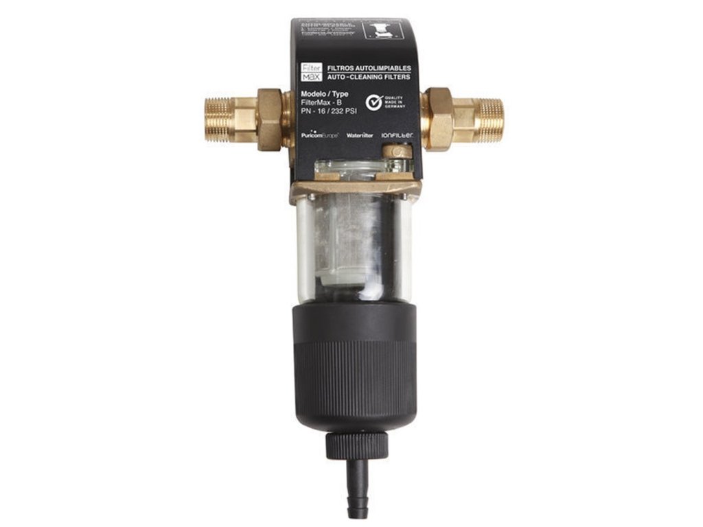 Einzigartige Filteranlage B100 zur Entfernung mechanischer Verunreinigungen ausgestattet mit einem selbstreinigenden System. Der Filter besteht aus robustem Messing, enthält einen mechanischen Filtereinsatz 100 Mikron aus Edelstahl. Das Filtergehäuse besteht aus strapazierfähigem Kunststoff.