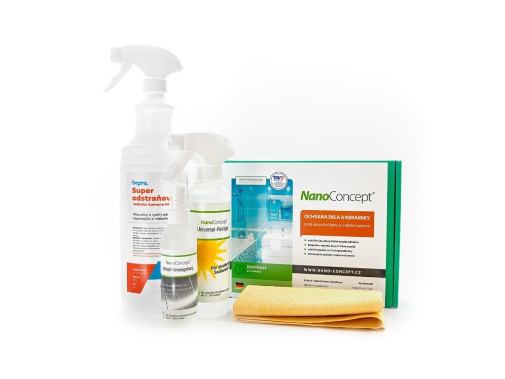 Ein praktisches Set von Nano-Produkten zum Schutz des Badezimmers vor Schmutzablagerungen, das die Zeit für die normale Reinigung erheblich verkürzt und Ihnen jährlich Tausende von Kronen bei Reinigungsmitteln spart. Damit halten Sie Ihr Zuhause mit minimalem Aufwand sauber.