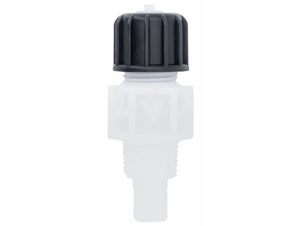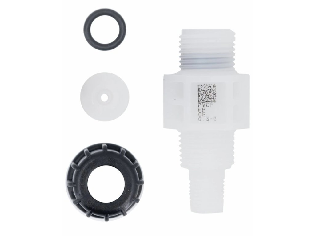Das Material des Ventils ist PVDF (Polyvinylidendifluorid) - ein hochreaktionsfreies thermoplastisches Polymer, das höchste Beständigkeit gegen Säuren und Lösungsmittel bietet.