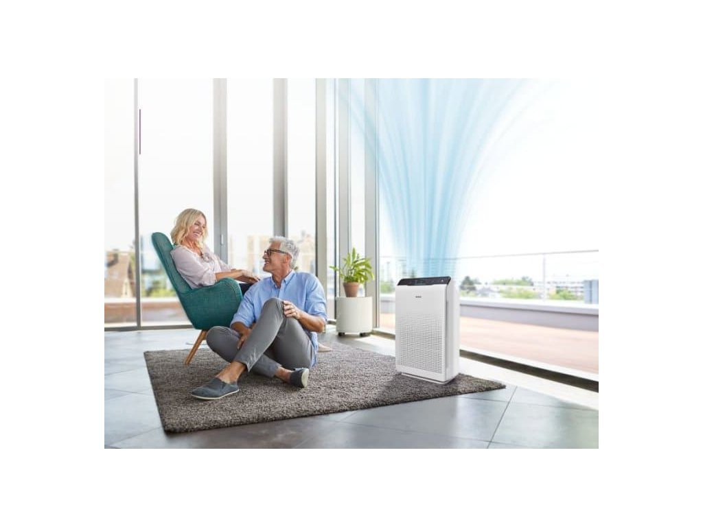 Der Luftreiniger ist geeignet für mittelgroße Räume bis 99 m2 (z.B. Wohnzimmer, Büros oder Praxen). Die empfohlene Raumgröße für Allergiker und Asthmatiker beträgt bis zu 35 m2 (Luftfiltration 4,5× pro Stunde). Die Reinigungsgeschwindigkeit für einen durchschnittlichen Raum (20 m2) beträgt 8 Minuten. Die Luftleistung beträgt 390 m3/h.