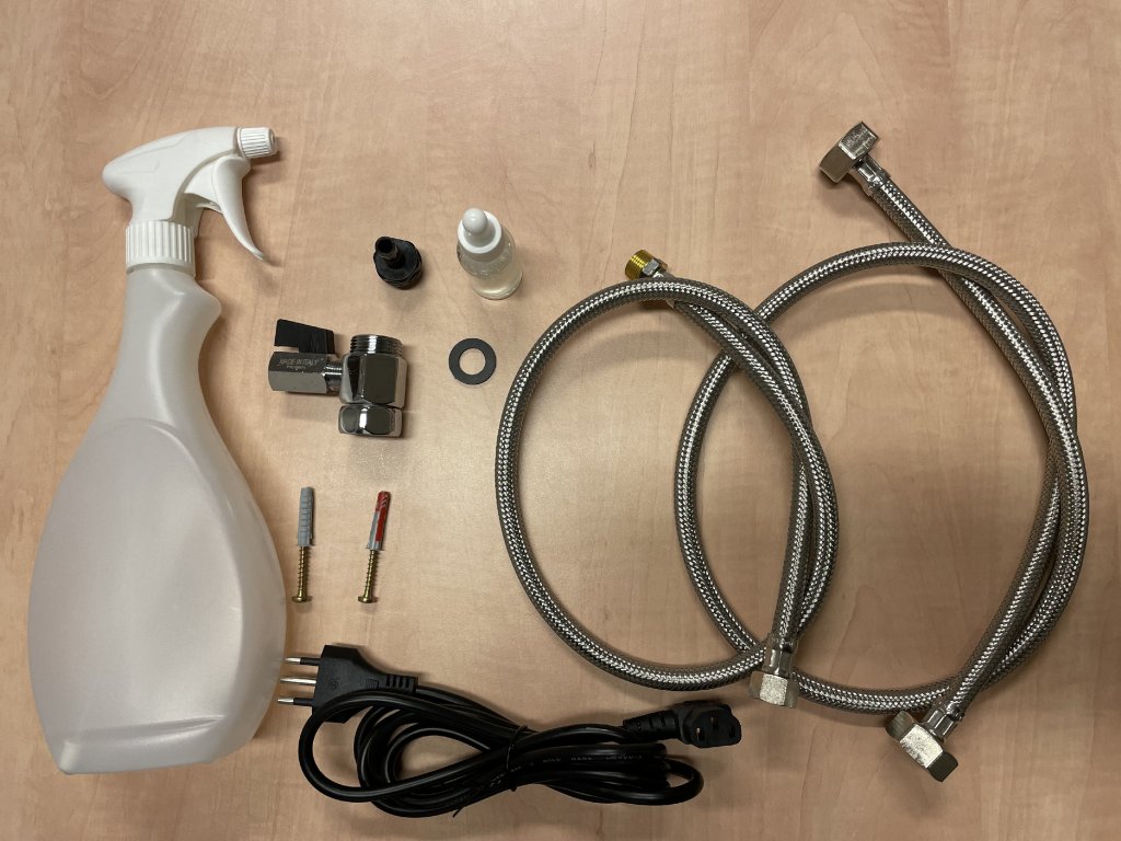 - Verbindungsschlauch vom Wasserzulauf zum Oxywash (1m, normierte Gewinde - gleich wie Waschmaschinenschlauch)