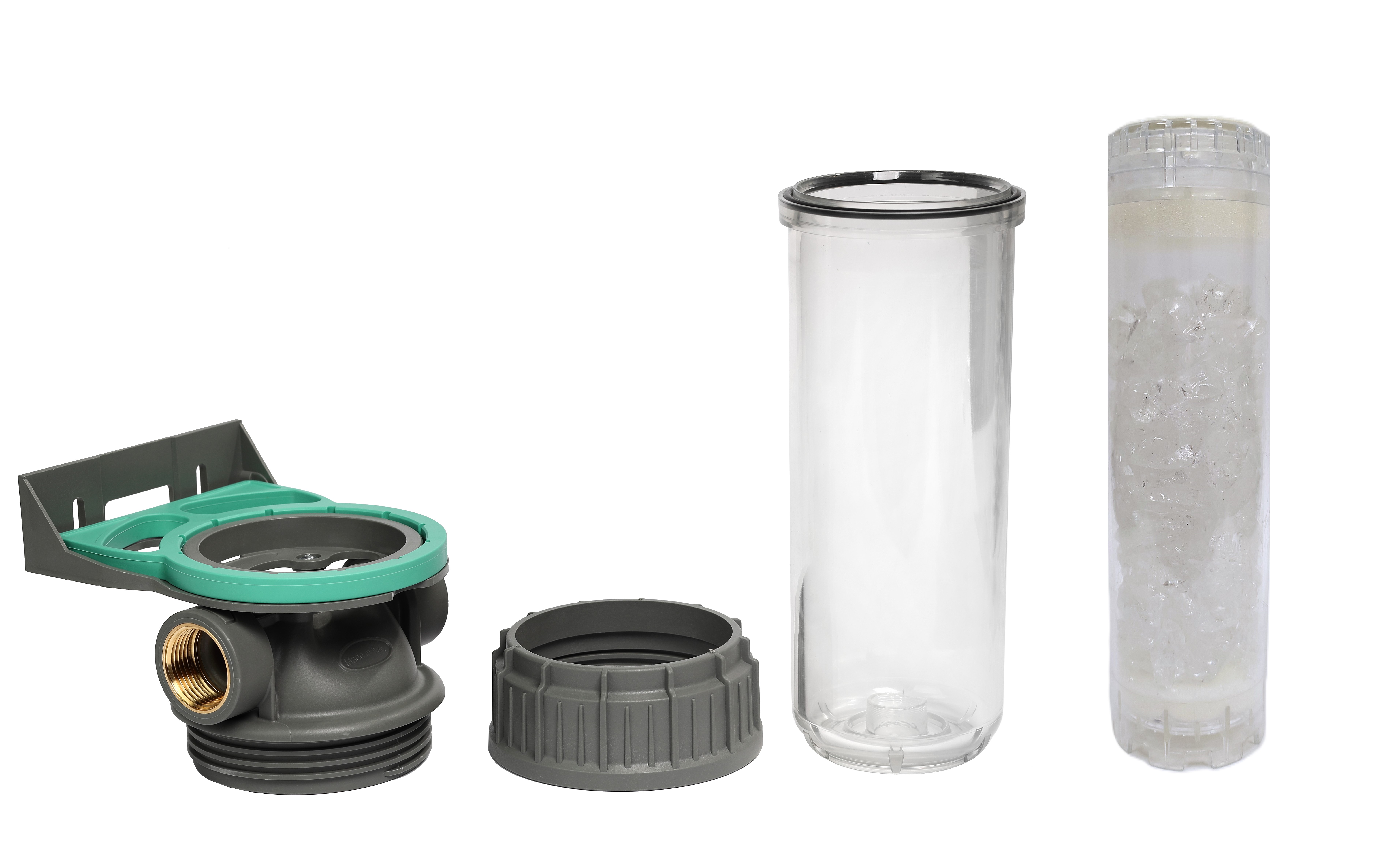 Der Filter besteht aus einer Filterhülse, einer Patronenhülse und der Polyphosphat-/Siliphos-Patrone. Die chemische Substanz (Polyphosphat – für Brauchwasser, Siliphos – für Trinkwasser), die sich im Wasser löst, bildet zusammen mit Kalzium und Magnesium komplexe lösliche Verbindungen, wodurch der Bildung von Kalk vorgebeugt wird.