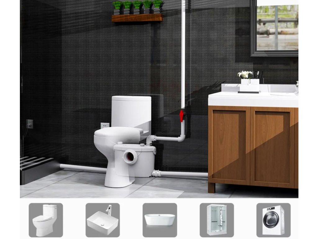 Das Gerät ist für das Abpumpen von Abwasser aus dem WC und drei weiteren Anschlüssen für den Wasserablauf vorgesehen, z. B. aus Duschkabine, Waschbecken, Bidet oder Waschmaschine. Diese Pumpenhebeanlage ist ausschließlich für den Hausgebrauch bestimmt. Sie arbeitet mit Flüssigkeiten im Temperaturbereich von 4 °C bis 90 °C.