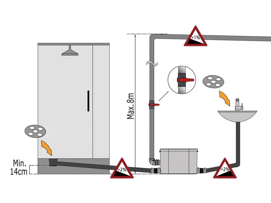 Pumpstation PumpaLift C-2 ist eine kompakte Lösung zum Pumpen von leicht verschmutztem Abwasser (ohne Fäkalien) in Situationen, in denen kein natürliches Gefälle des Rohrsystems sichergestellt werden kann, z. B. bei Installationen unter Kanalniveau oder während Renovierungen und Modernisierungen von Gebäuden.