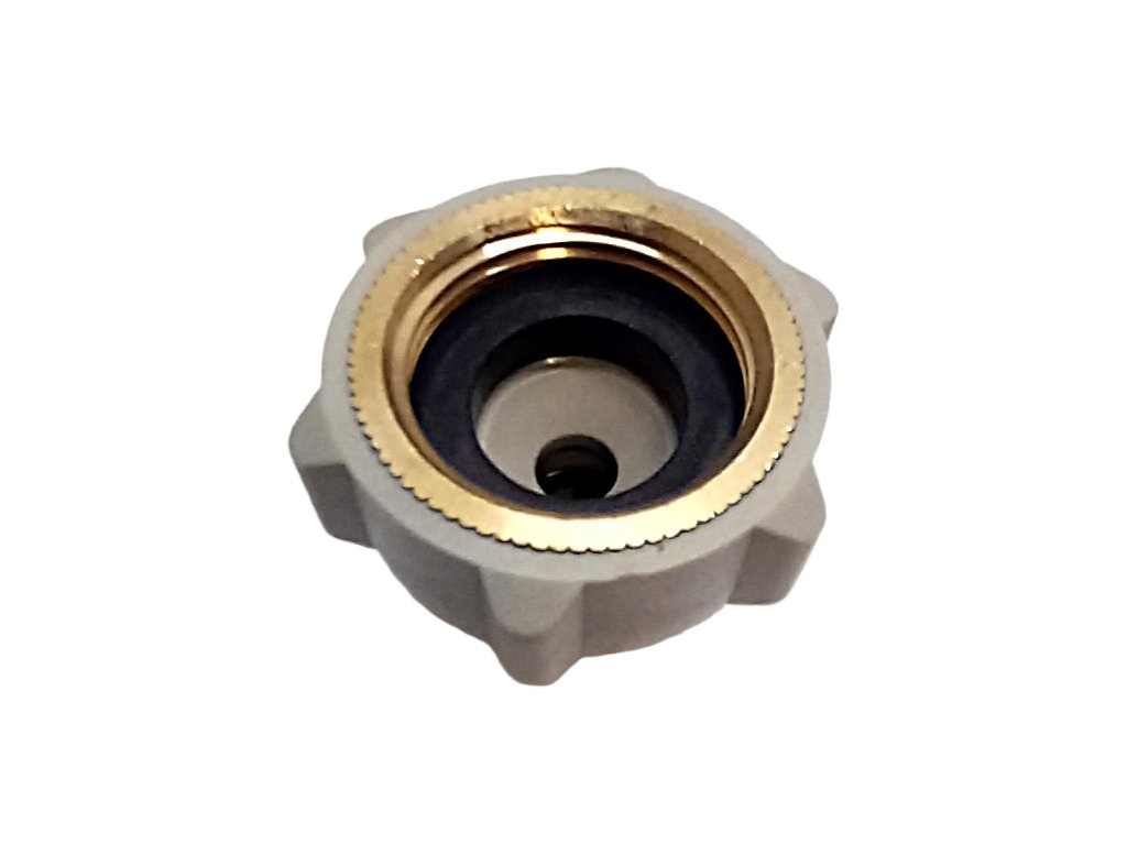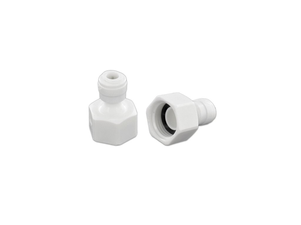 Reduzierende Schnellkupplung mit einem Eingang für den Schlauch und einem Innengewinde auf der anderen Seite. Dient zum Anschluss des Schlauchs an Geräte mit Gewindeausgang. Geeignet für Wasserspender und Filtersysteme.