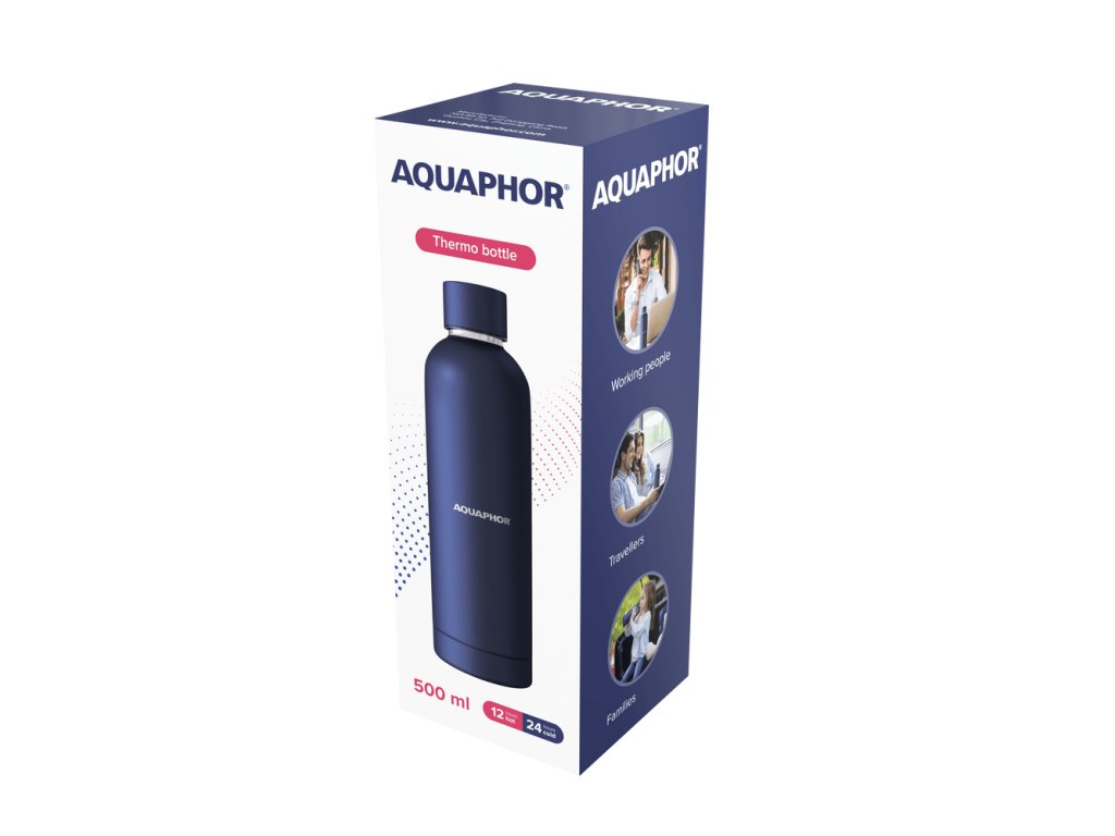 Die AQUAPHOR Thermosflasche ist mit einer doppelwandigen Vakuumisolierung ausgestattet, die warme Getränke bis zu 12 Stunden und kalte bis zu 24 Stunden auf Temperatur hält. Das stilvolle Design und das praktische Fassungsvermögen von 0,5 Litern sind ideal für verschiedene Situationen wie lange Spaziergänge, Wanderungen, Geschäftstermine, Sport oder Reisen. Die Flasche ist aus hochwertigem Edelstahl gefertigt und hat eine elegante matte Oberfläche.