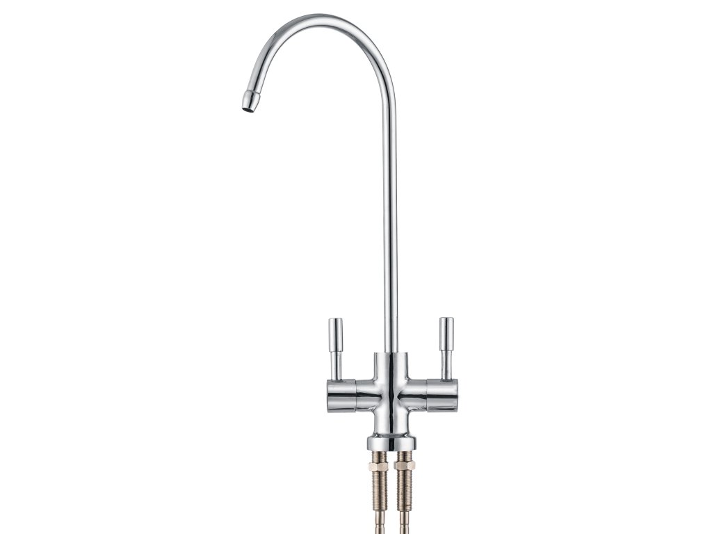 Zwei-Wege-Wasserhahn: Das Paket enthält einen Wasserhahn mit zwei Ausgängen zur Auswahl von gefiltertem Wasser mit niedrigerer oder höherer Mineralisierung.