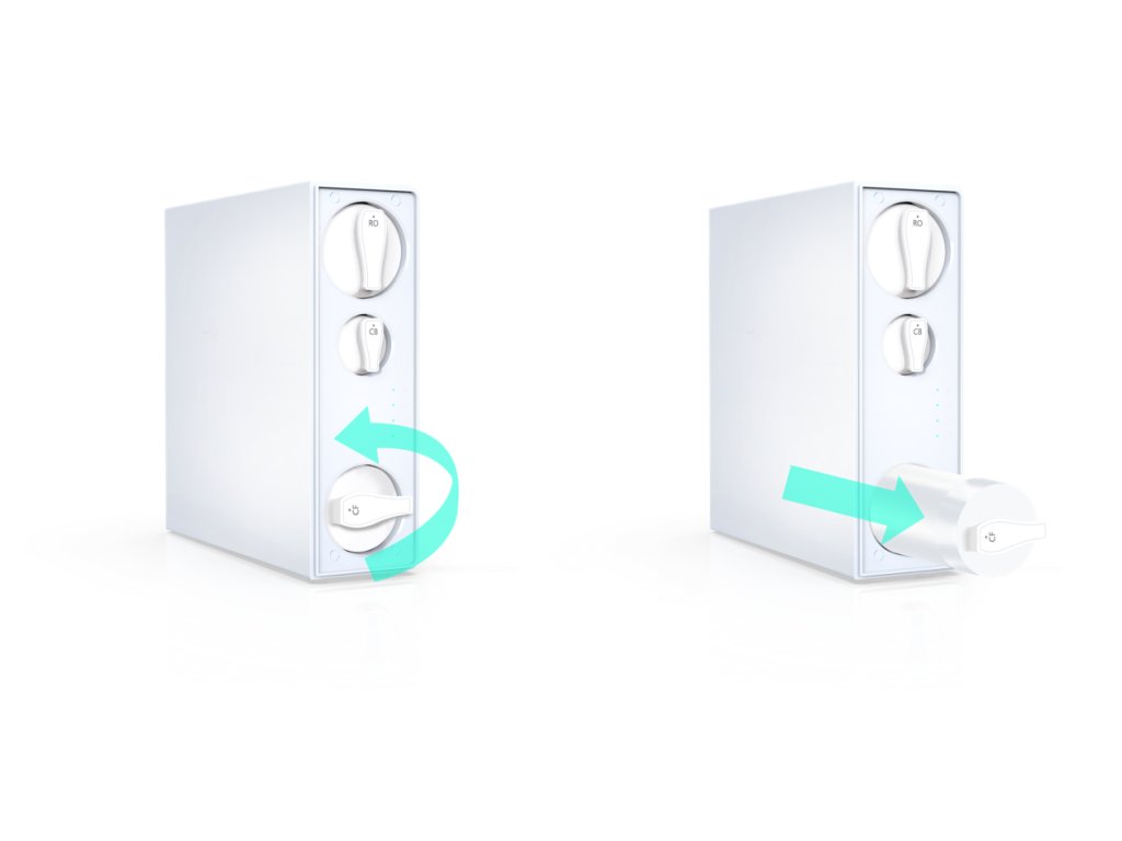 Der Wechsel des Filtereinsatzes ist einfach und schnell. Einfach drehen, herausziehen und den neuen Filtereinsatz einsetzen. Kein Trennen der Wasserzufuhr erforderlich. Wenn der Filter gedreht wird, schaltet sich die Wasserzufuhr automatisch ab