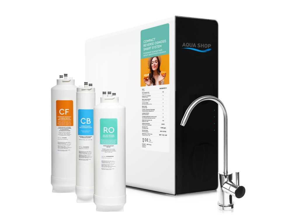 Umkehrosmose CR 90 ist ein kompaktes, modernes, einfaches und leicht zu wartendes Gerät. Dieser Filter, der Wasser aus dem Stadtnetz oder Brunnen aufbereitet, verfügt über eine fortschrittliche Durchfluss-Membranfiltration, wobei kein Ausdehnungsgefäß benötigt wird. Die Filtrationseffizienz ist die Eliminierung von 95 % unerwünschter Stoffe (einschließlich 99,6 % Viren und Bakterien).