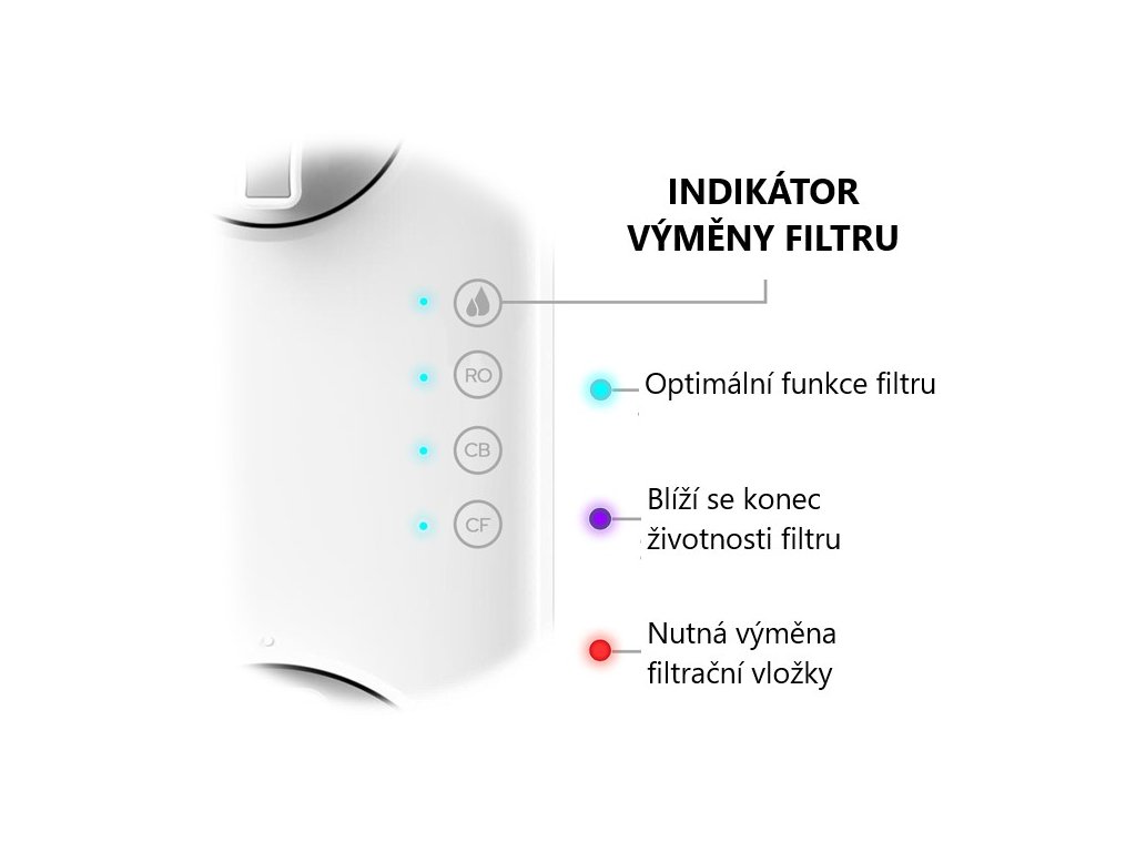 Die farbige Anzeige auf der Vorderseite des Filters weist auf eine Verschlechterung der Wasserqualität und die Notwendigkeit des Wechsels eines bestimmten Filters hin. Die Notwendigkeit des Wechsels kann auch durch zusätzliche akustische Signalisierung erkannt werden. Ein kurzer Signalton bedeutet, dass sich die Lebensdauer des Filters verkürzt, und zwei kurze Signaltöne bedeuten einen notwendigen Wechsel. |