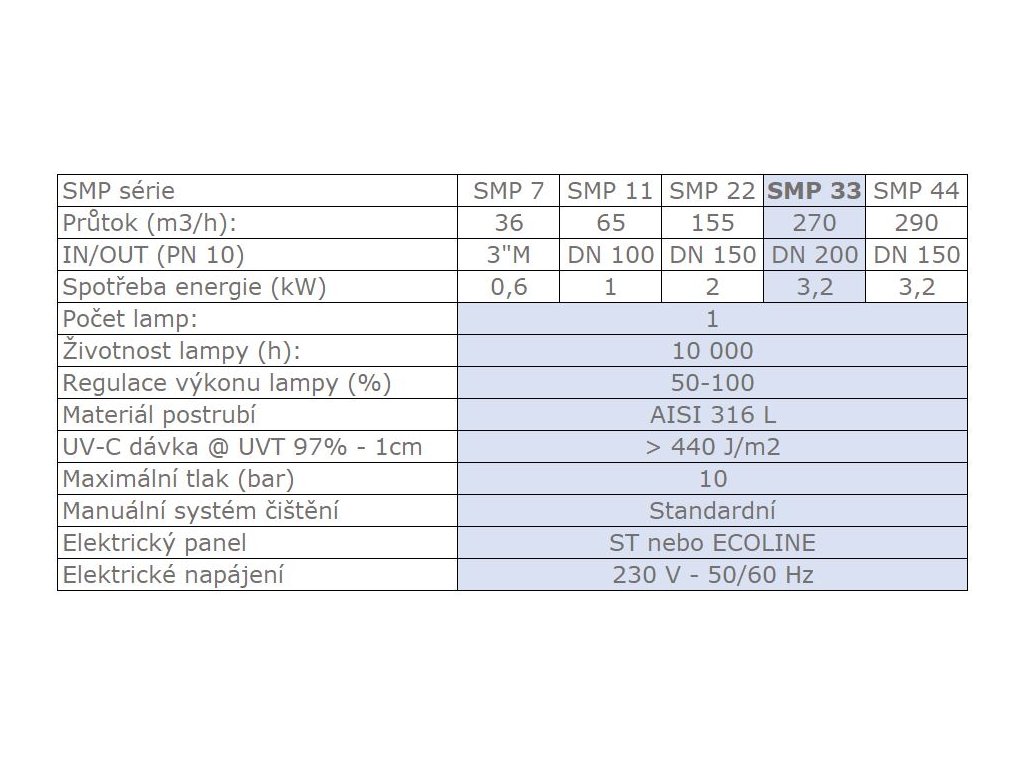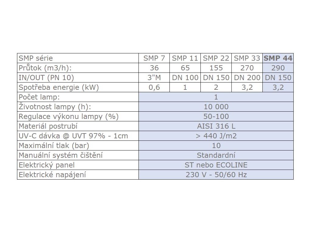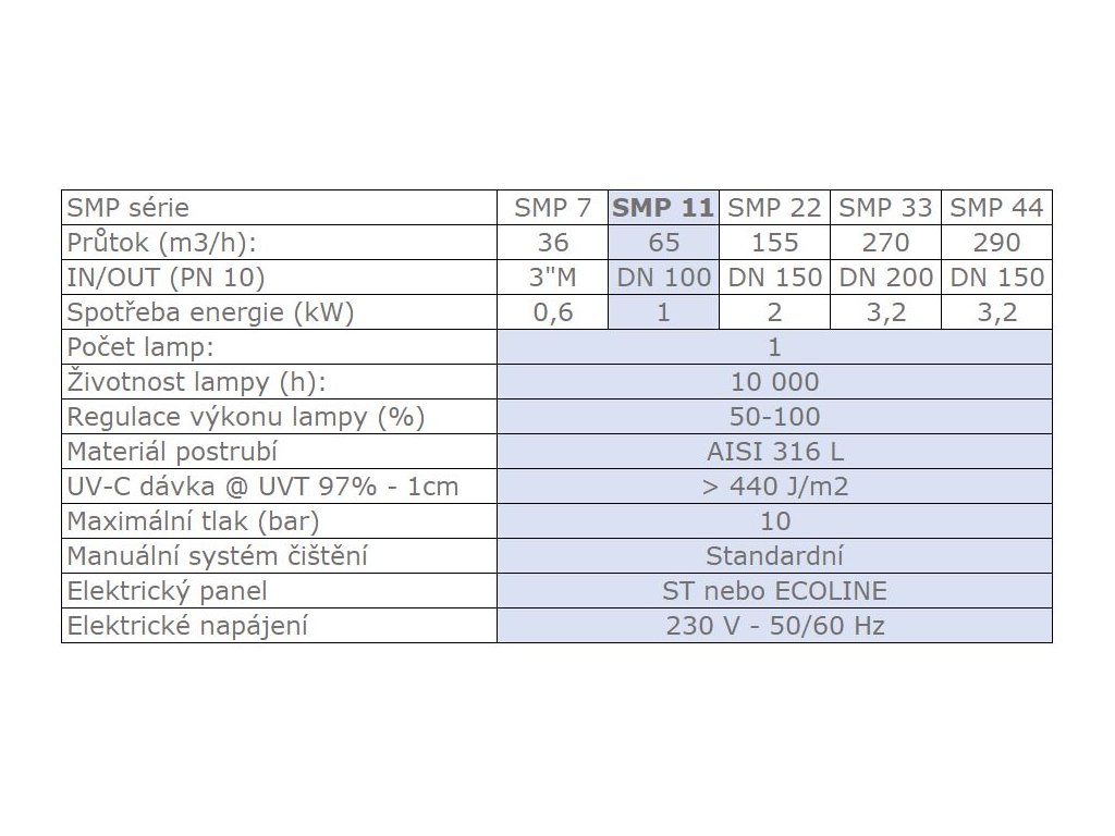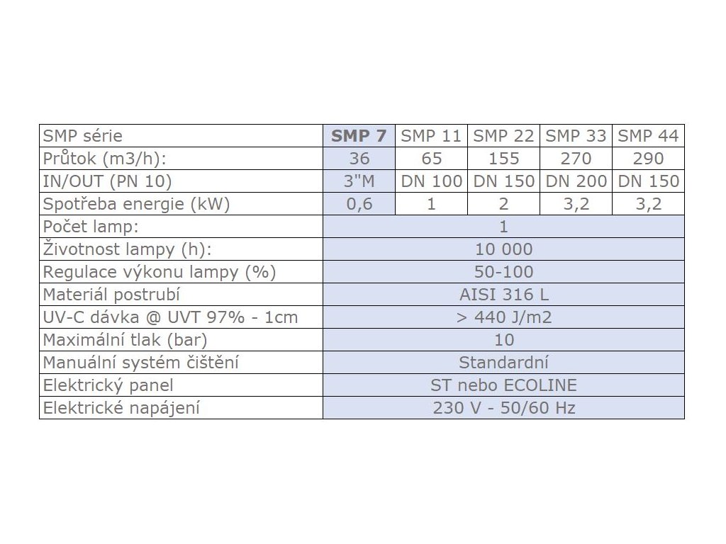 SMP UV-Lampen eignen sich besonders für Schwimmbäder und Aquarien, aber auch als zusätzliche Reinigung in Wasseraufbereitungsanlagen. Sie verwenden leistungsstarke Mitteldrucklampen (300 W bis 12 kW) in kompakter Bauweise, die minimalen Platz für die Installation benötigen und eine effiziente Behandlung großer Wasserdurchflüsse ermöglichen. Sie halten einem Betriebsdruck von bis zu 10 bar stand und sind aus Edelstahl gefertigt.