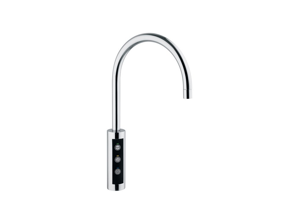 Elektronischer Wasserhahn für Soda 6180 (BTS 8) für Sodobars BS. Aufgrund seines modernen und luxuriösen Aussehens ist er eine geeignete Lösung zum Zapfen von Sodawasser, gekühltem Wasser und Raumtemperaturwasser in Restaurants, Cafés, Bars. Dieser Wasserhahn bietet das Zapfen von Sodawasser, gekühltem und Raumtemperaturwasser mittels Tasten am Körper des Wasserhahns.