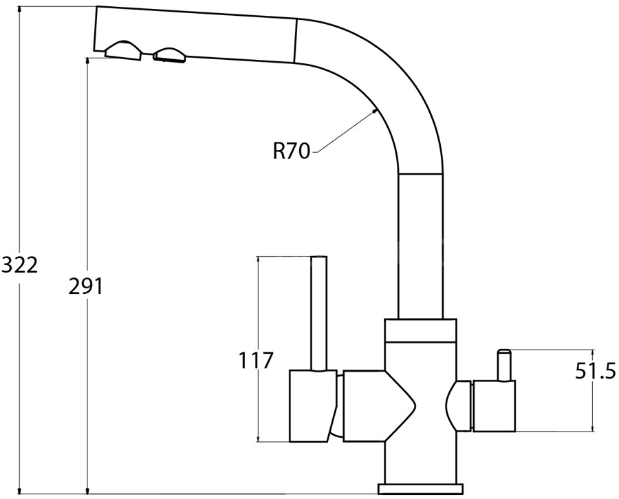 - Höhe des Wasserhahns: 322 mm