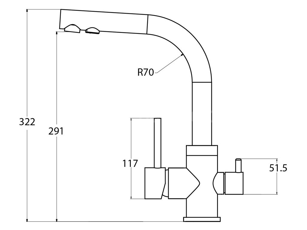 - Höhe des Wasserhahns: 322 mm