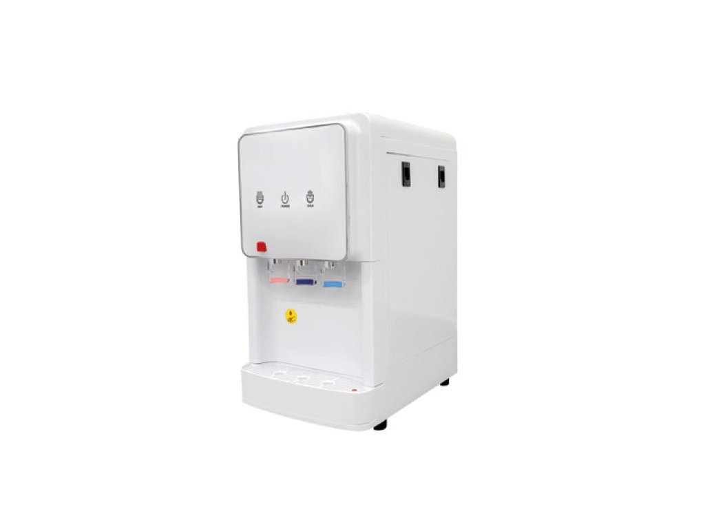 Moderner Wasserspender mit Umkehrosmosefiltration und Anschluss an das Wassernetz. Ideal für Büros, Flure, Wartezimmer oder überall dort, wo Sie gefiltertes kaltes und warmes Wasser benötigen.