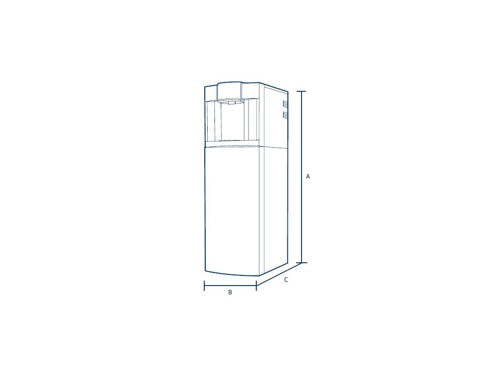 Leistungsstarker Wasserspender mit Anschluss an das Wassernetz. Ideal für Büros, Flure und überall dort, wo Sie dank des Spenders ständig kaltes, Raumtemperatur- und warmes Wasser zur Hand haben müssen. Produziert 22 Liter kaltes und 9 Liter heißes Wasser pro Stunde.