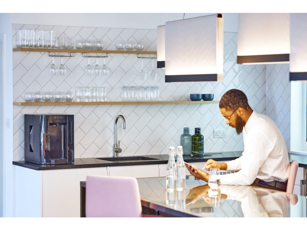 Der Dispenser Classic E4 mit Festwasseranschluss vereint hohe Leistung mit exzellenter Nachhaltigkeit und Plastikfreiheit. Dank der einzigartigen Kühltechnologie mit umweltfreundlichen Kältemitteln ProCore® und DryChill® bietet der E4 eine umweltfreundlichere Lösung für hervorragend schmeckendes gefiltertes Wasser. Kohlefiltration dient zur Gewinnung von sauberem, gesünderem und Premium-Wasser. Sie reduziert Sedimente, Gerüche, Chlor und Mikroplastik im frisch gefilterten Wasser. Dank der Option der kontaktlosen Steuerung via Bluetooth® wird das Kontaminationsrisiko reduziert. Die Leistung des Geräts beträgt 50 l/h Kalt- oder Sprudelwasser und 15 l/h heißes Wasser.