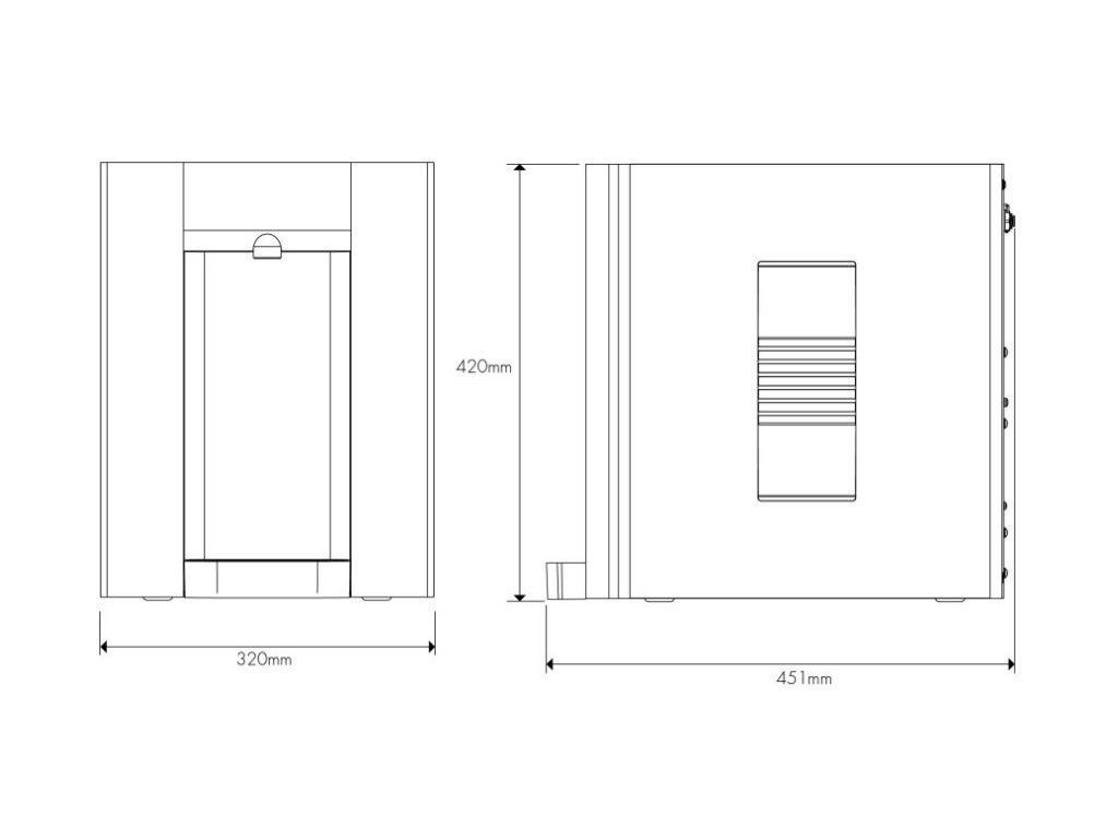 Abmessungen des Dispensers Classic E4 (B × T × H): 320 × 460 × 420 mm
