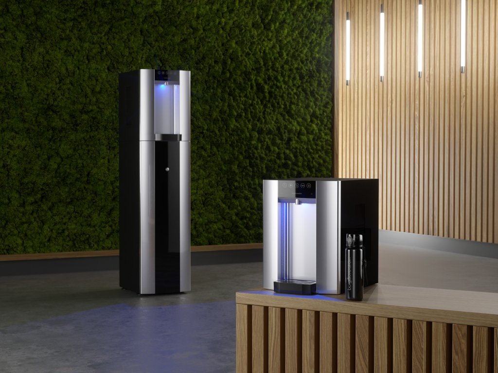 Der Dispenser Classic E6 mit Anschluss an die Wasserleitung verbindet hohe Leistung mit hervorragender Nachhaltigkeit und Sauberkeit ohne Plastik. Dank der einzigartigen Kühltechnologie des ökologischen Kältemittels ProCore® und DryChill® bringt der E6 eine grünere Lösung für hervorragend schmeckendes gefiltertes Wasser. Der Kohlefilter dient dazu, sauberes, gesünderes und erstklassiges Wasser zu erhalten. Er reduziert Ablagerungen, Gerüche, Chlor und Mikroplastik im frisch gefilterten Wasser. Dank der Möglichkeit der kontaktlosen Steuerung über Bluetooth® reduziert er das Risiko einer Kontamination. Die Leistung des Geräts beträgt 50 l/h kaltes oder sprudelndes Wasser und 15 l/h heißes Wasser. Der energiesparende EcoMode versetzt das Gerät in den "Standby"-Modus, wenn es längere Zeit nicht benutzt wird.
