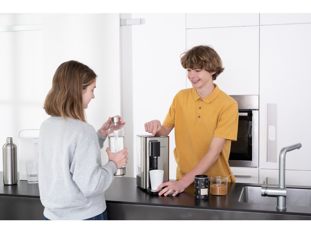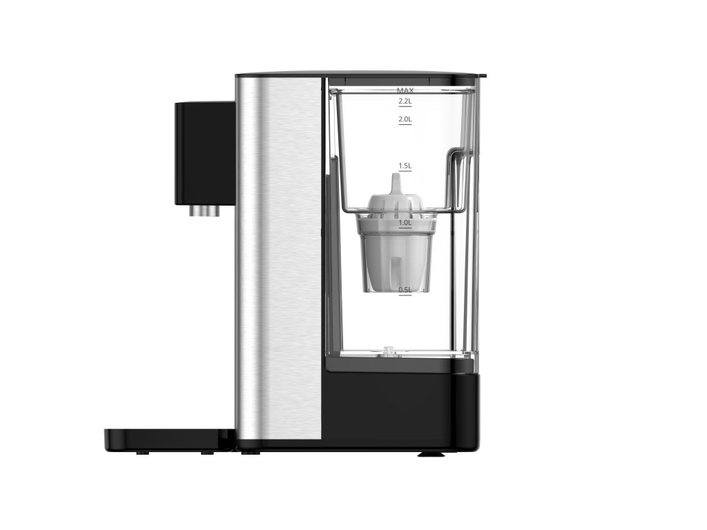 Er bietet schnelle Zubereitung von frischem heißem Wasser in Sekundenschnelle und ermöglicht die Einstellung von drei verschiedenen Temperaturen, geeignet zum Beispiel für die Zubereitung von Tee, Kaffee oder Kindergetränken. Bietet Wasser in Raumtemperatur, Wasser mit 85°C und 100°C und ist mit einer Sicherheitsverriegelung gegen Verbrühungen ausgestattet.